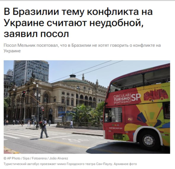 Об этом, с горечью и досадой сообщил посол Украины в Бразилии Андрей Мельник. Он пожаловался на то, что в этой стране практически не говорят о войне. Данную тему вообще стараются обходить стороной.