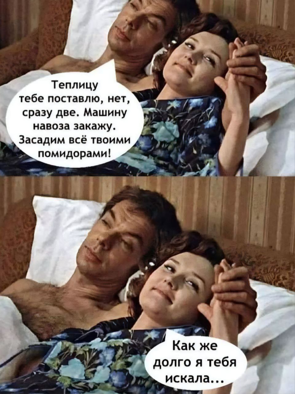 Суслик2 писал(а): carolion писал(а): Суслик2 писал(а): Да пусть убирается в чужих богатых домах наша юристка. Я за чистоту лично. Любой труд почетен. Ну что ты прикопалась то. Мою полы, мою . Ты тоже помой, успокаивает.  Мы пойдем другим путем. Снижение стресса и тревожности: Садоводство – это отличный способ снять стресс и тревожность. Физическая активность на свежем воздухе способствует выработке эндорфинов – "гормонов счастья", которые улучшают настроение и общее самочувствие. Суслик, я когда про ваше семейство огородников читаю, у меня перед глазами такая картинка встаёт
