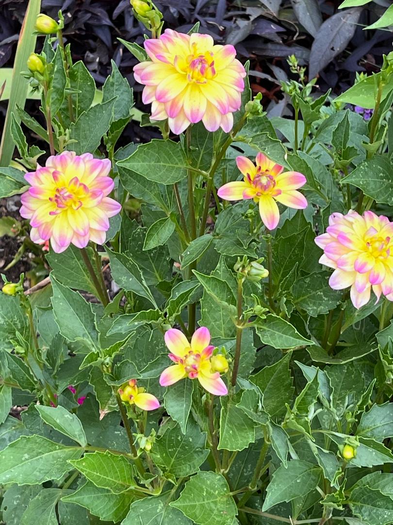 Помидорки начали зреть.Из семян растила, семена из Франции!На кусте 14 штук. Поначалу куст такой пушистый весь был, и 3 помидоры.  Все оборвала, Аляской подкормила, молоком с йодом облила. вот теперь 14 уже зреют. Очень радует георгинчик.  Хотя цвет другой на картинке был. Не знаю, выживет ли лето. В том году тожe сажала, не выжил.